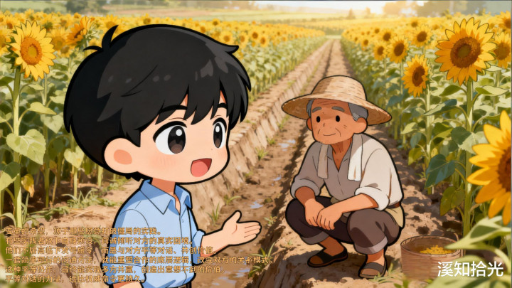 他莫得以"时间提供者"的姿态对农户施命发号,而是蹲坐在田埂上,用三个月时分倾听向日葵造就者的实在窘境。