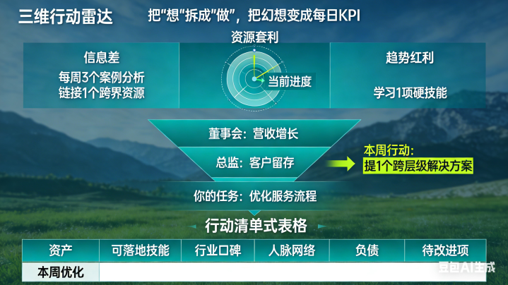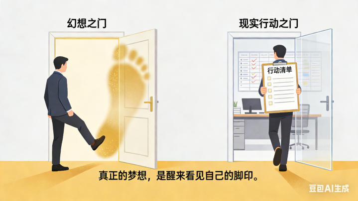 我从不劝东说念主「醒来」,那是荼毒的。我建议:作念个梦的明白师,把幻思的画面反编译成可操作的行动清单。幻思「不该发的财」?不要只思着彩票,去分析你行业里正当的价值凹地:它是某个没被清闲的细分需求(信息差),是合资不同圈层资源的套利空间(东说念主脉变现),又或者是一项立时就会爆发但你公司还没喜爱的硬手段(趋势红利)。这周,行动清单来,去找出三个你们所在领域的收获野门路案例,对它们的底层逻辑进行分析,之后,瞧瞧哪一条跟你当下手头的资源距离最近。幻思「不该升的职」不要只盯着职位。去反过来究诘你上级的上级(总监/VP)究竟是因为啥掏钱,是处置关键客户的信任(政策资源),是谐和部门之间的利益冲突(政事均衡),又或者是给公司遁入一个潜在的庞大风险(风控智力)下个月,行动清单里,在你不越级别文牍的情形下,尝试在周报或者会议之中,提议一个至少能波及你上级痛点(不只单是你的任务那一块)的解决倡导。幻思「财神爷叩门」先把我方打形成一个值得被投资的优质金钱。你的专科是不是有稀缺性(别东说念主莫得你有),你的口碑是不是变成了隐性的货币(别东说念主有的你比别东说念主好),你的东说念主脉关系是不是有很高的合资价值(好还宽泛)行动清单,立时来盘货,你最有信心的阿谁手段,在招聘阛阓上能值些许钱,你的名字,在共事和互助伙伴暗里评价的时候,频繁会和哪些关键词关联到一块儿。梦,是渴望的源代码,充满样式但横三竖四推论力,是沉稳的编译器,将其升沉为能在本质寰球运行的步伐。