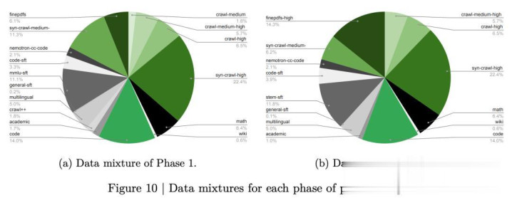 第二阶段吃掉剩下的20%(5万亿Token),这部分全是精挑细选的高质地数据,维基百科、高质地PDF、STEM推理数据的权重被大幅升迁,相当用来拉升准确率。