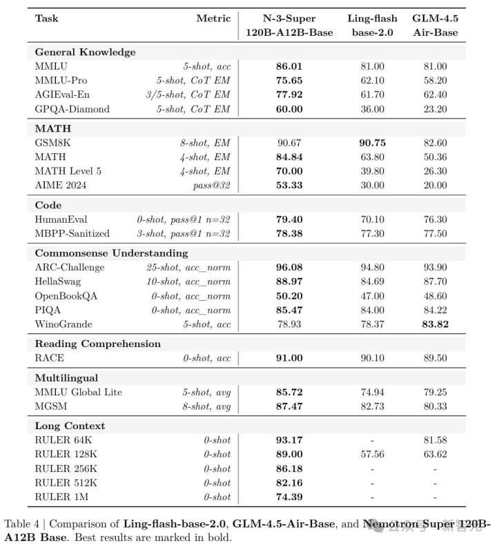 最终练出来的「基础模子」,在MMLU上跑到86.01,MMLU-Pro 75.65,MATH 84.84,把同等体量的顶流模子远远甩在了死后。