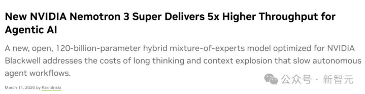 昨夜,英伟达重磅祭出新一代「开源模子」Nemotron 3 Super,专为大范围AI智能体打造。