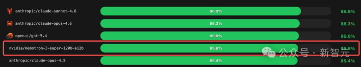 与GPT-OSS-120B、Qwen3.5-122B对比,Nemotron 3 Super均拿下了最高得益。