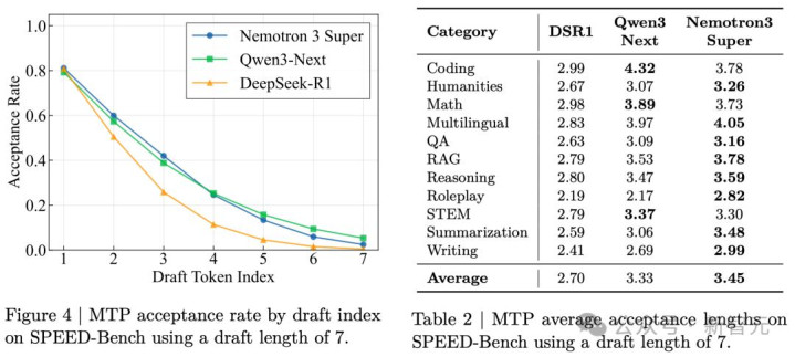 Nemotron 3 Super还加入了一个大杀器:多Token估计(MTP),模子质地和推理效率一举两得。