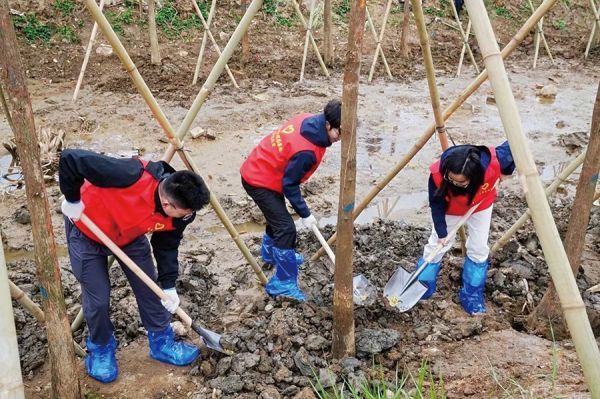 志愿者植树为城市添绿