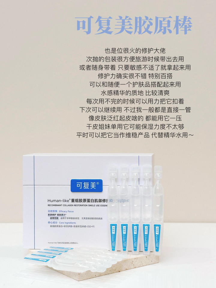 可复好意思亦然是修护大牌了,这款胶原棒,接收专研要素C5HR重组胶原蛋仿生组合,4种重组胶原蛋径直打入皮肤里面,表里相济修护、褂讪肌肤障蔽,复配积雪草+依克多因,快速舒徐泛红!