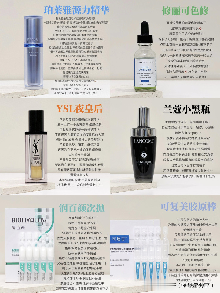这6款大牌抗老主打维稳抗老。什么是修护类的抗老精华,即是先以修护为主,补助抗老的作用,尤其是关于角质受损、角质比拟薄,容易过敏,或者是水油失衡的油敏肌肤,换季干燥明锐泛红等各式脆弱肌肤,想要抗老的精华。