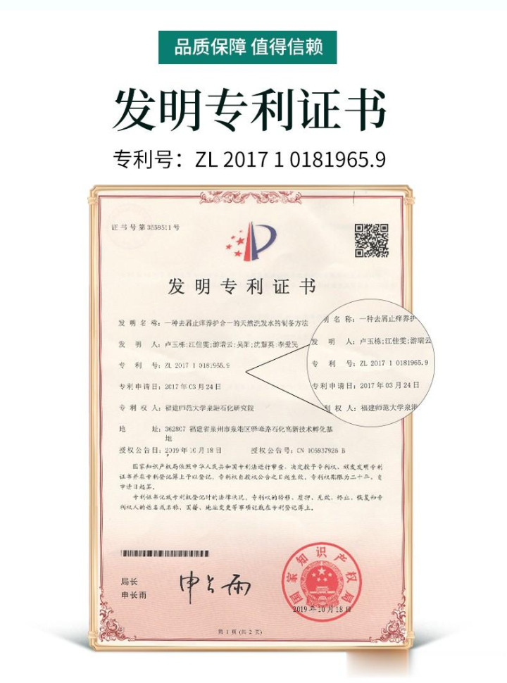 - 舒徐止痒因素:添增加耕作物索求物可快速缓解头皮泛红瘙痒,实测几次止痒起效,相较于单一舒徐因素家具,止痒速率进步45%,头皮泛红消退,幸免因瘙痒握挠导致的头皮损害。