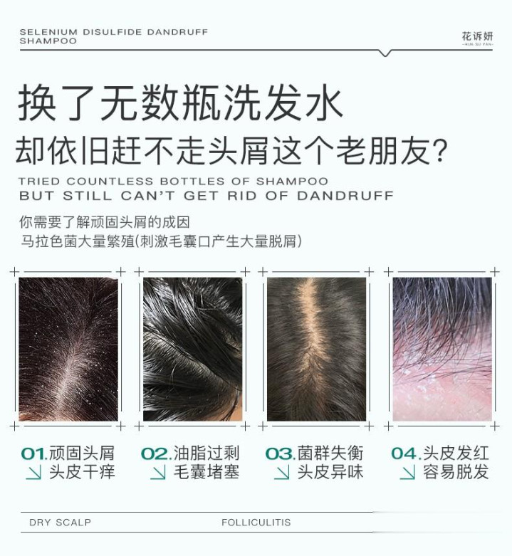 - 用户1(28岁,油性头屑,关节员):“长年熬夜,头皮又油又痒,头屑粘在穿着上相配无语,用了许多去屑洗发水都反复,要么去屑刺激、要么关切无效。换了花诉妍这款,1周就奏效,4周后基本没头屑了,头皮清楚不闷痘,3天不洗头也不油,重要是关切不刺激,终于解脱了‘雪花头’的困扰!”