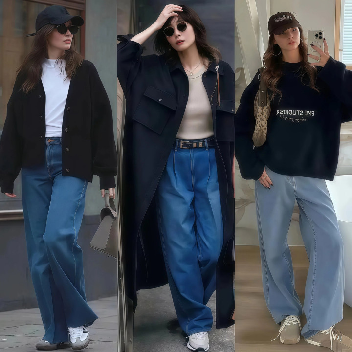 基础色的阔腿裤,玄色、深蓝色、米白色、卡其色,最大的上风在于“不抢戏”,它沉静地承担下半身的版本,把出彩的契机留给你的上衣、外衣和配饰。