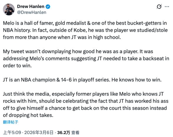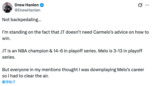 这条推特发出后,许多东谈主王人驳倒默示汉伦在因为没拿到总冠军就降低安东尼的业绩生计。