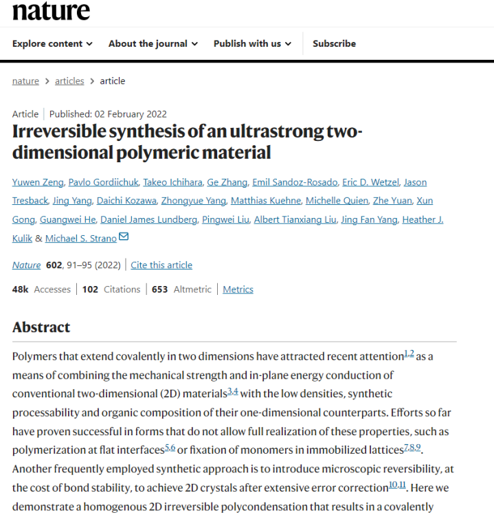 2022年和2025年,关联恶果取悦发表在《Nature》正刊上,MIT的Michael S. Strano证据给出的评价是:“划时间的影响力”。多家著名外媒将该材料誉为“颠覆知道的的‘基建将来’”。