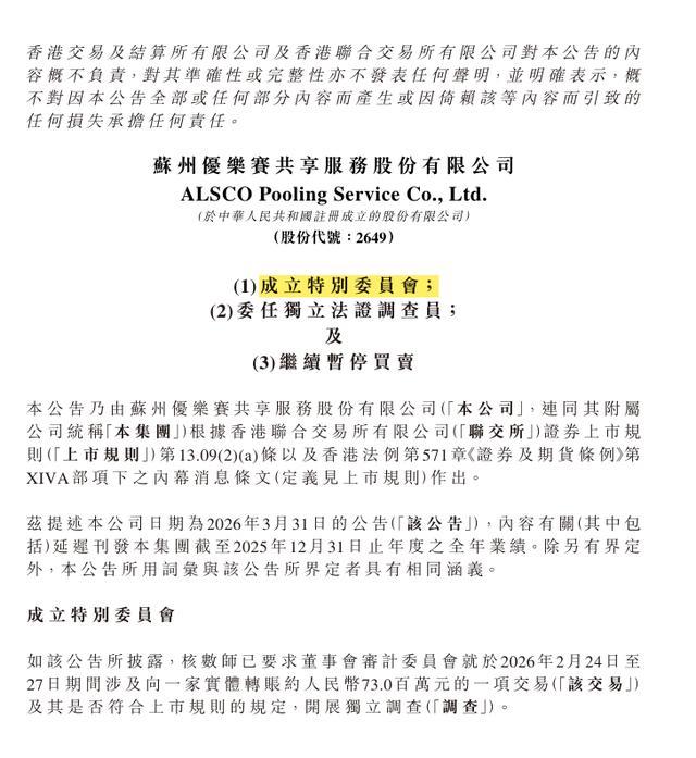 公司的审计师是安永管帐师事务所。安永在审计2025年年报时发现了这笔转账,以为事情不浅易,于是书面条件公司董事会下属的审计委员会,请外部专科机构沿路来作念孤苦探望,查了了这笔来回的细目以及它是否恰当上市限定。