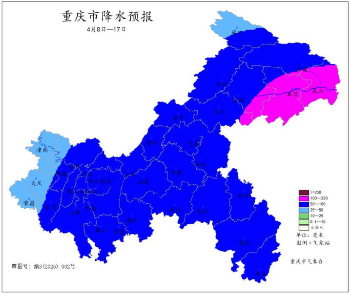 重庆市表象局、表象灾害防御专委办4月7日21时发布紧迫表象信息专报,以前十天我市雨日偏多,小心对春耕春播的影响和地质灾害风险。