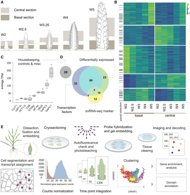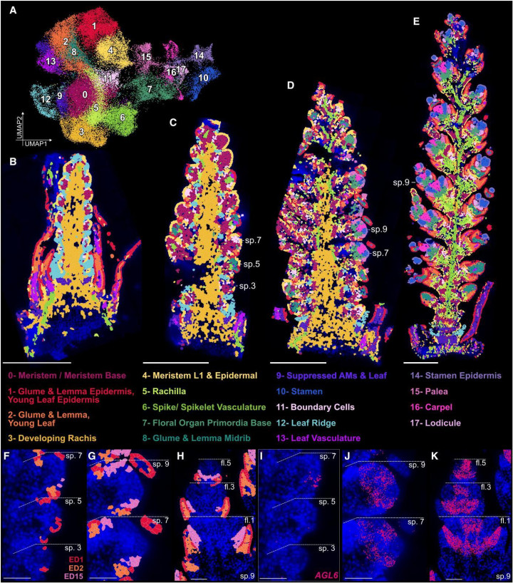 2025年12月开云体育官方网站,英国约翰英纳斯中心Katie A Long等东谈主在The Plant Cell发表题为Spatial transcriptomics reveals expression gradients in developing wheat inflorescences的著作。该盘问初度将MERFISH(多重罪状正经性荧光原位杂交工夫)系统应用于小麦花序发育盘问,见效构建了细胞水平的高隔离率基因抒发图谱,并揭示了穗型建成过程中基因抒发的复杂梯度,相称是基部小穗发育渐渐的分子机制,为这也曾典发育问题提供了全新的分子层面解释。