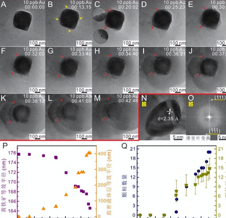 经过无数次的失败、无数次的调试,团队终于捕捉到了一个轰动东说念主心的画面:黄金纳米颗粒果然在黄铁矿的名义,少许点形成、长大,就像种子在泥土里生根发芽,迟缓长成幼苗相通。这个流程,不是黄金从别的场合迁徙过来附着在黄铁矿名义,而是信得过兴味上的“原位滋长”——黄金的“种子”(金离子)在黄铁矿的“滋补”下,渐渐调解、千里淀,最终形成了咱们肉眼能看到的黄金颗粒。