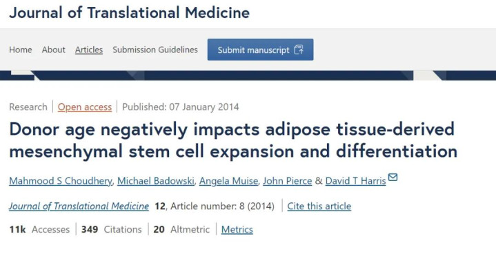 [3] Aging of mesenchymal stem cells: Implication in regenerative medicine Regen Ther. 2018 Dec; 9: 120–122. Published online 2018 Nov 3.