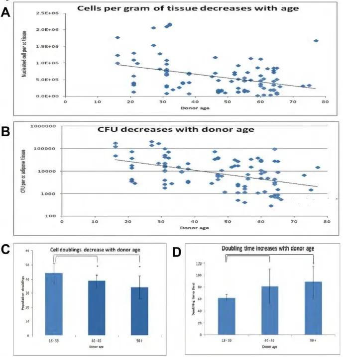 在执行中,询查东说念主员比较了来自不同庚岁段(年青、中年和老年)捐赠者的MSCs的扩增情况。