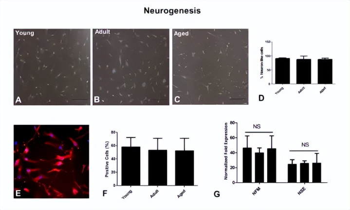 与分化为骨细胞和软骨细胞不同,在MSCs分化为神经细胞的初期分化阶段,各年岁段细胞的神经样分化后劲莫得权贵互异。