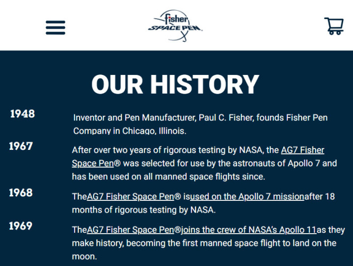 东说念主类上天外仍是是半个世纪之前的事了,让咱们回到上个世纪,1965年,好意思国东说念主 P.C.FISHER 苦求了反重力笔发明专利,1967年,进程好意思国国度航空航天局(NASA)两年多的严格测试,kaiyun sportsP.C.FISHER AG7 的飞梭天外笔被采用供阿波罗 7 号的宇航员使用,而况后续所有载东说念主航天任务一直使用 FISHER 天外笔。