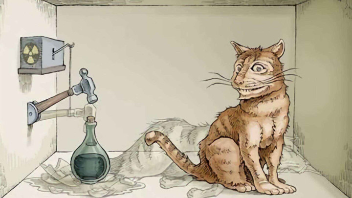 实验假定:将一只猫、一个放射性原子、一瓶剧毒氰化物与一个探伤器一同放入密封的箱子中。放射性原子有50%的概率在一小时内衰变,若衰变发生,探伤器会触发机关冲破氰化物瓶子,猫将被毒死;若原子未衰变,猫则存活。在箱子未被大开、未进行不雅测的情况下,放射性原子处于“衰变”与“未衰变”的重叠态——而左证量子力学的逻辑,这意味着箱子中的猫,也将处于“在世”与“厌世”的重叠态,既非纯正的生,也非纯正的死,而是两种情景的同期共存。