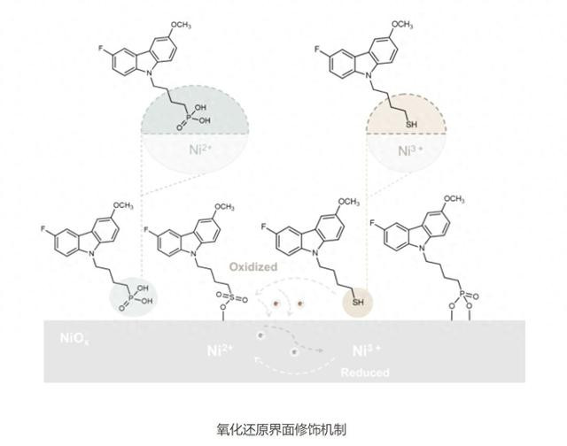 据先容,该团队设想并合成了一种新式自拼装分子4-(3-氟-6-甲氧基-9H-咔唑-9-基)丁烷-1-硫醇(MeOF-4SHCz),开云体育官方网站并将其用于靶向修饰氧化镍基底名义的Ni3+富集区域。借助硫醇基团的复兴性,MeOF-4SHCz可有用复兴NiOx基底名义的Ni3+,造成新的S-O-Ni键,并与经典的P-O-Ni键协同锚定,提高了自拼装层在NiOx名义的全体掩盖率。