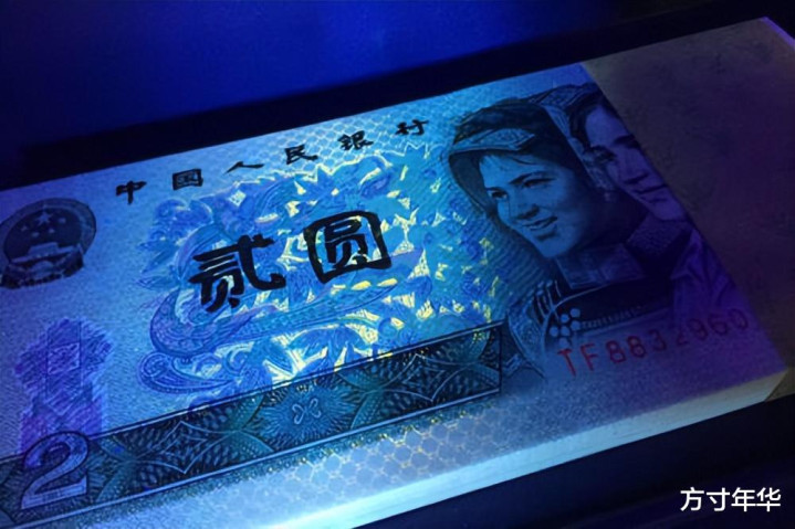 在东说念主民币储藏中有两个俗话,分别是“逢绿必涨”“逢2必涨”,而四版币的2元纸币面值带2,票面情绪亦然绿色,一直是四版币中的明星品种,尤其是荧光币绿鬼魂,更是被誉为荧光币的币王。
