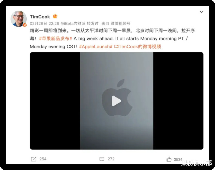 相较此前的 Greg,此次的官宣径直由 CEO 库克牵头。