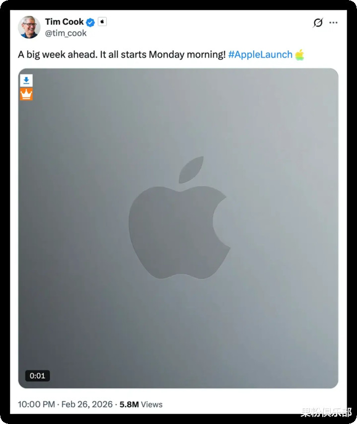 在 X 平台上,库克暴露:接下来的一周密关热切,一切皆要从周一早上运转!