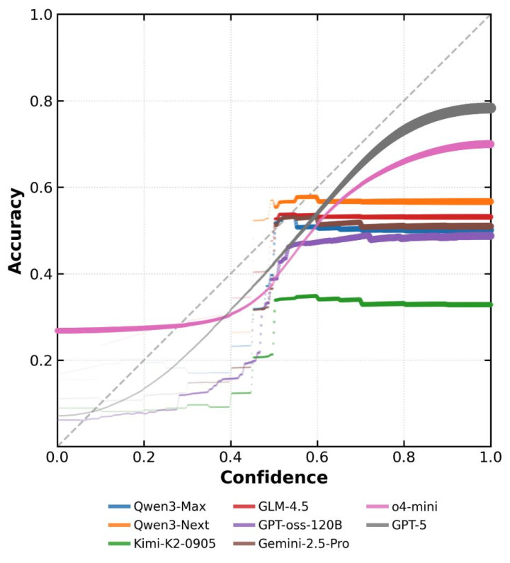 置信度校准图:广泛前沿模子枯竭「心中罕有」