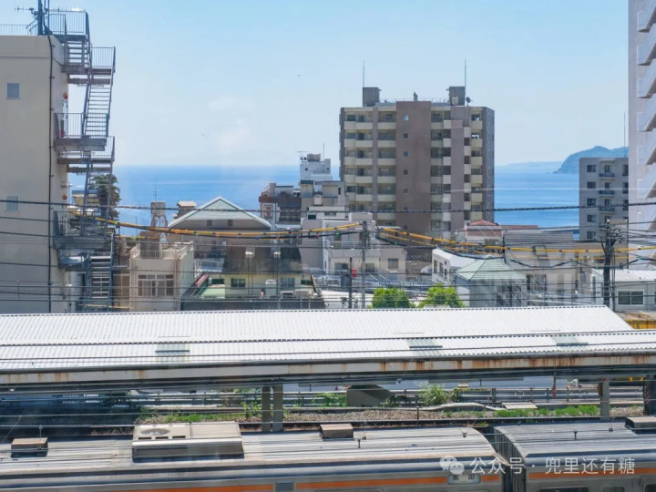着落平台的窗外不错看到热海市中心。我还能瞟见相模海。