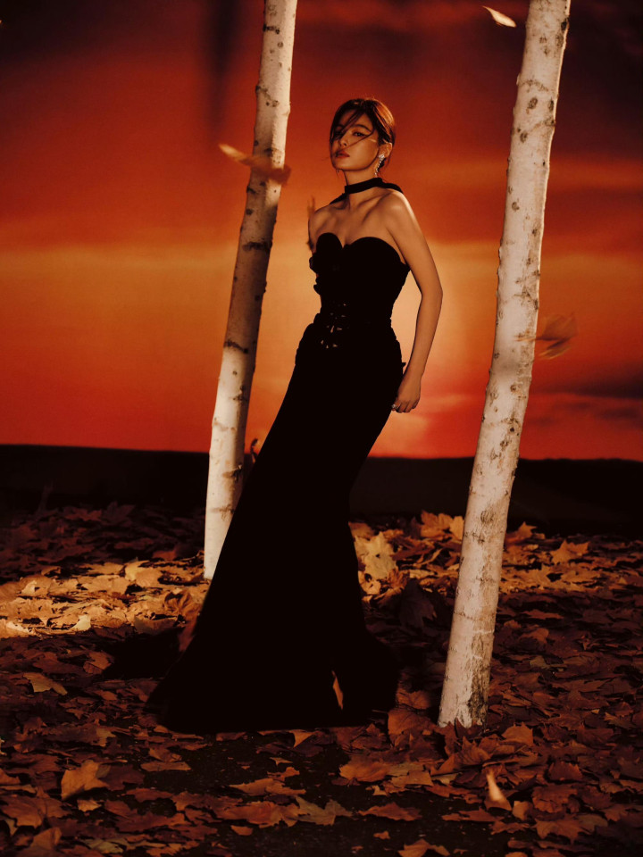 开云体育 辛芷蕾挂颈抹胸黑裙