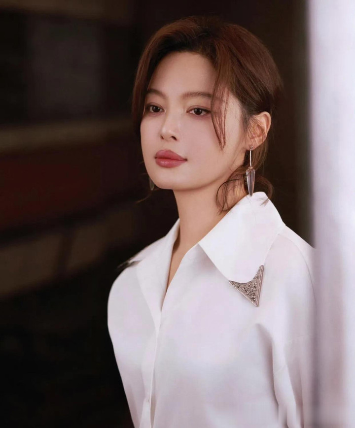 开云sports 辛芷蕾的气质确切出挑! 穿白衬衫+灰色开叉裙, 从简又高等!
