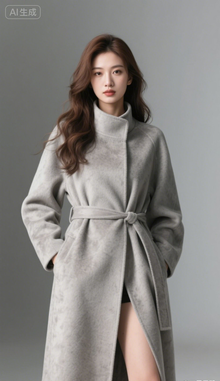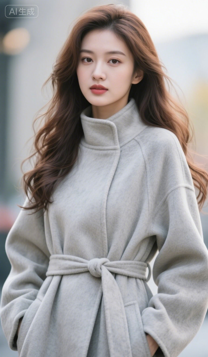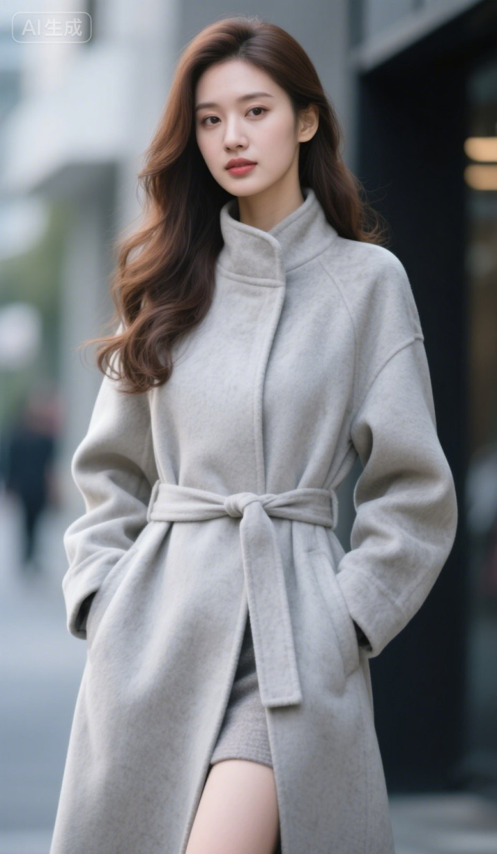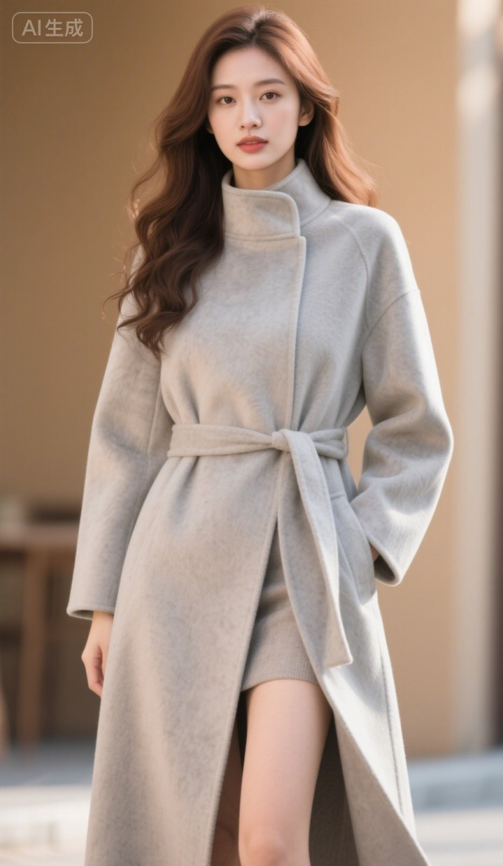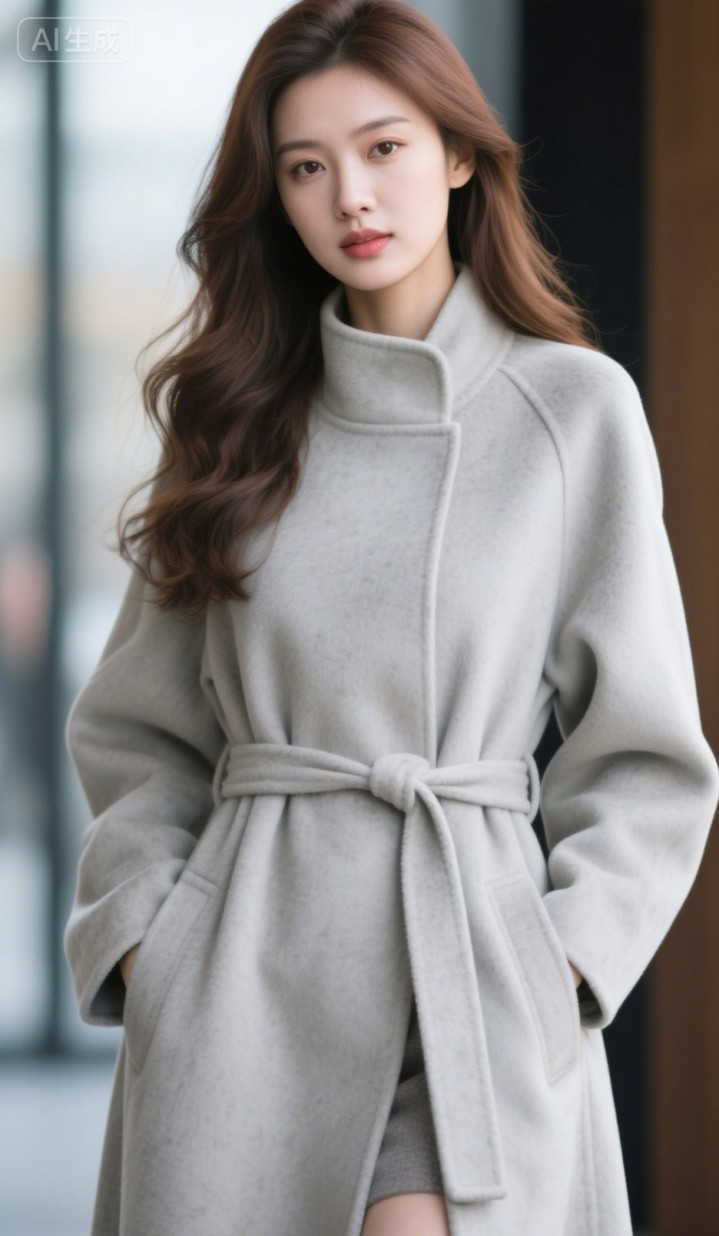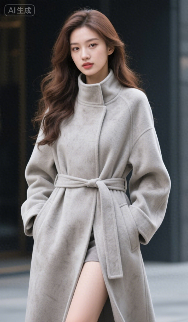 开云体育 穿灰色呢子大衣的好意思女