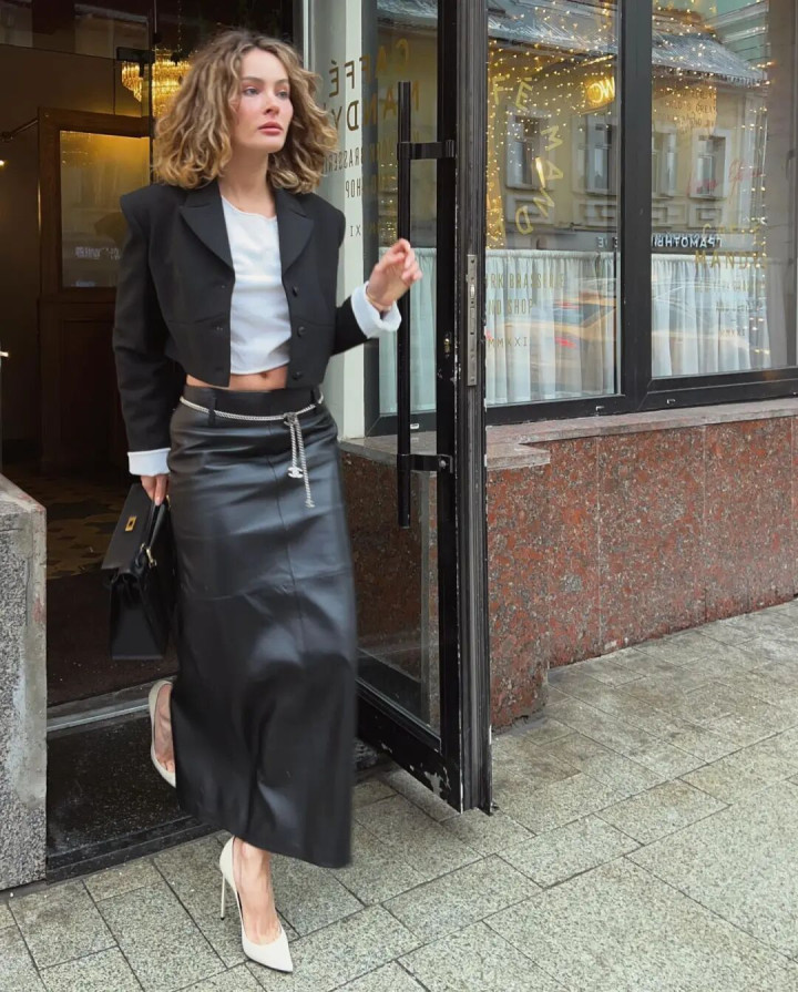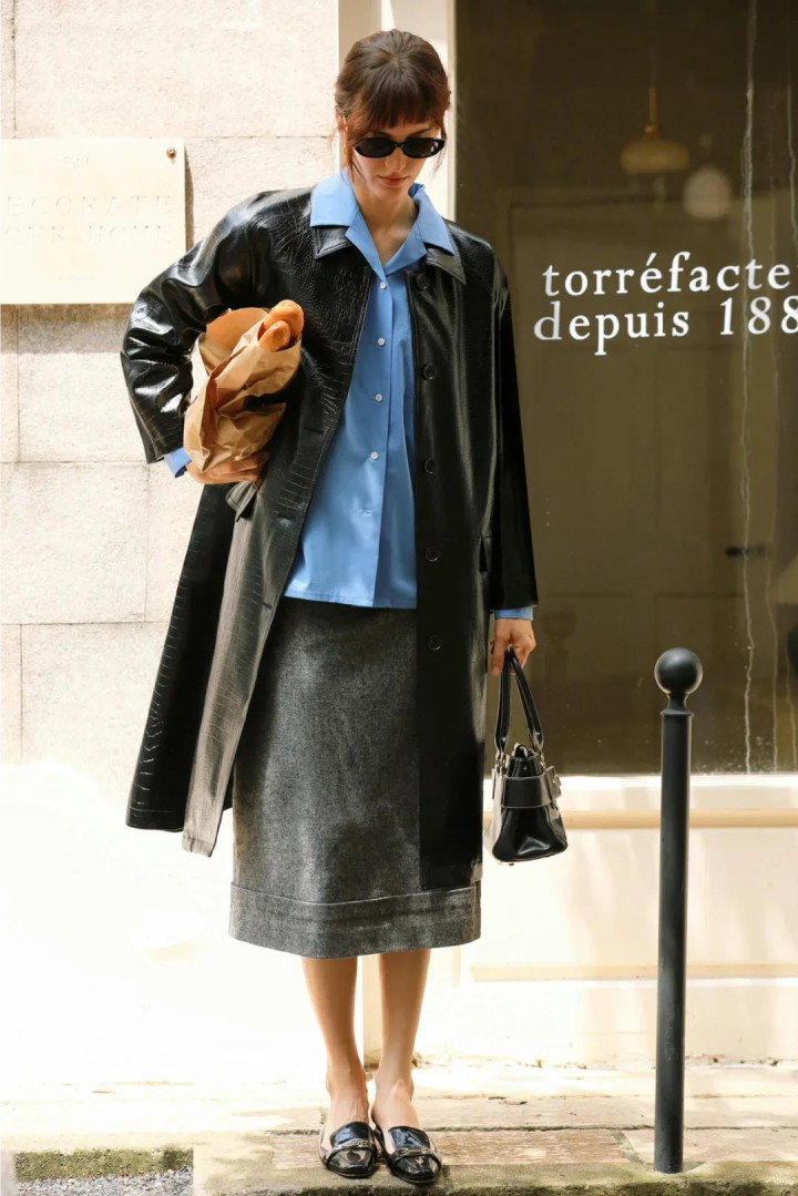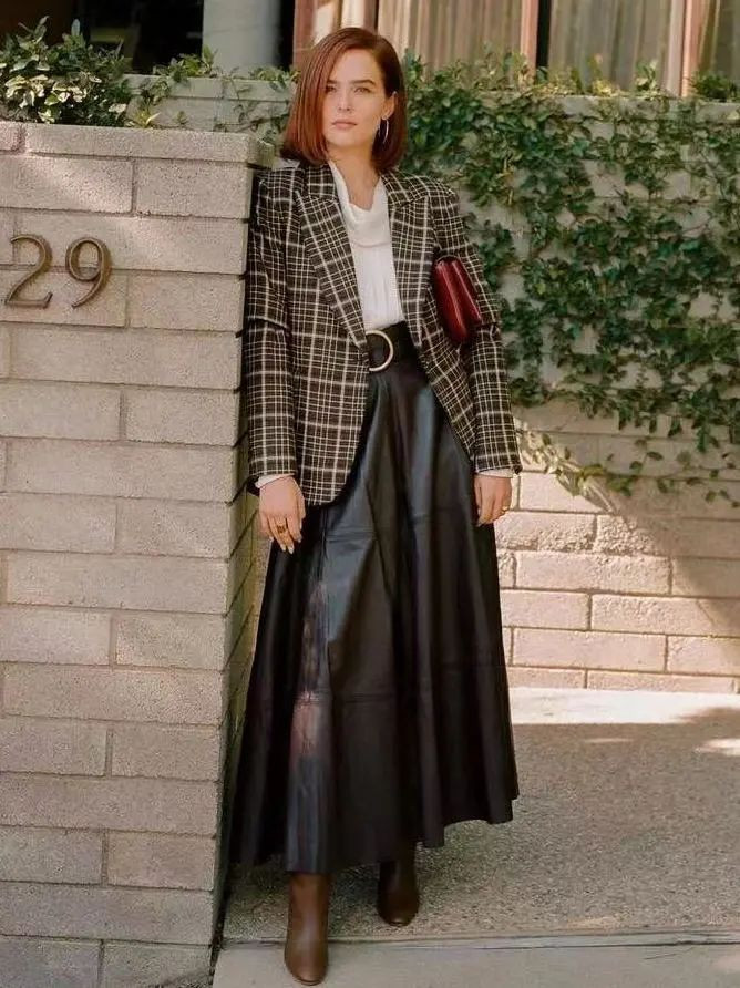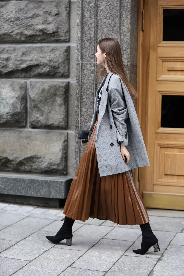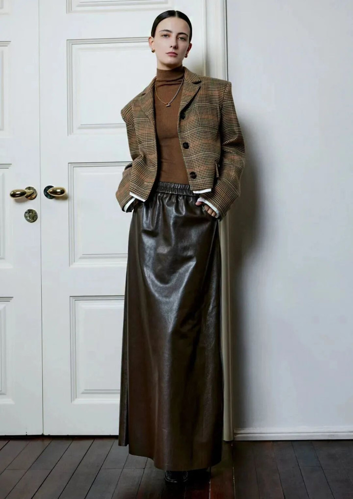 真皮革裙不是为献媚谁而生。它垂坠、挺括、略带凉意,像一封没拆封的信,笔迹融会,口吻克制。