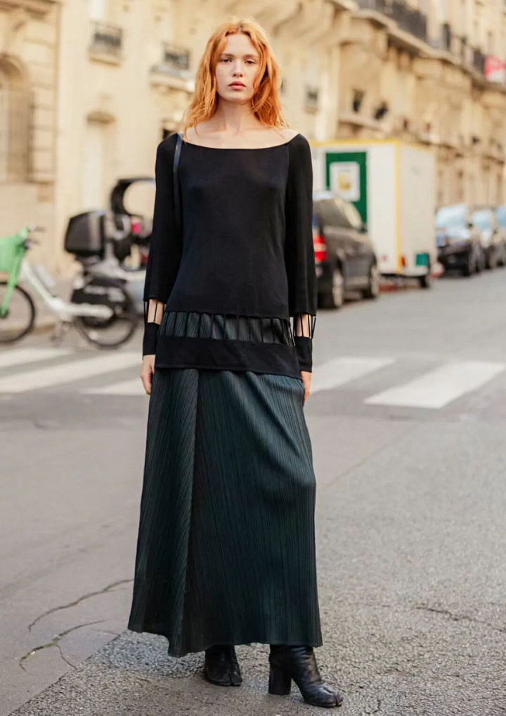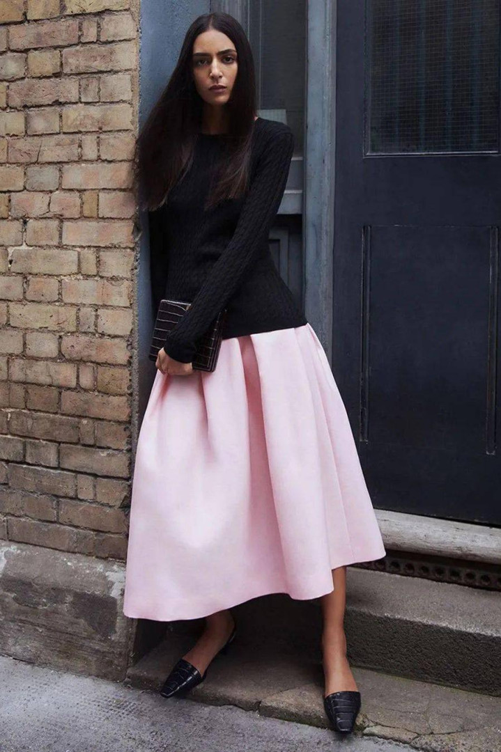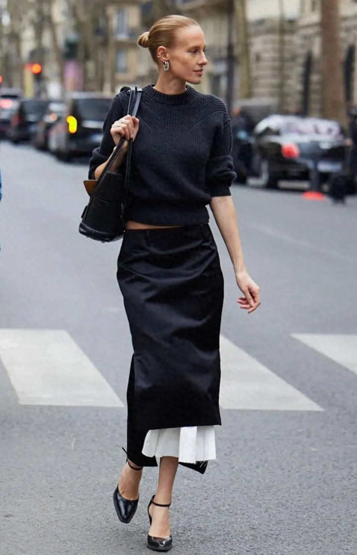 但最妙是配一件旧毛衣——袖口微微起球,领口松垮,裙摆却丰盈如初。